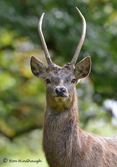 | This young male was sniffing and tasting the air as he could smell the stag in the picture above. He had already been chased off by this bigger stag so he left well alone. |