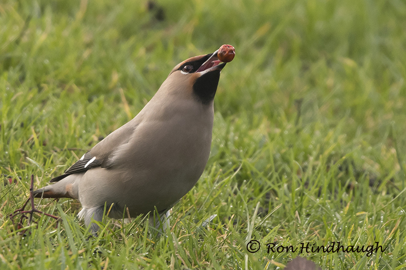 | Between bouts of chasing the Waxwings, it would occasionally take a berry. |