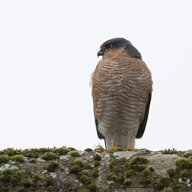 A cracking male Sparrowhawk on the roof of our neighbour’s bungalow. Oh for a blue sky.